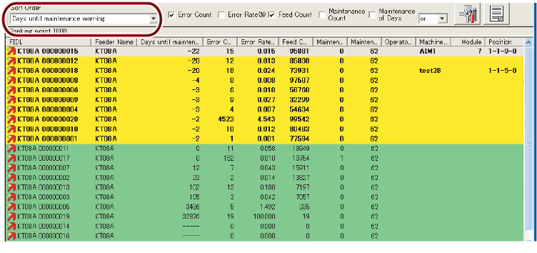 生成维修保养警告所需天数将显示于 [Worst ranked] 视图中。