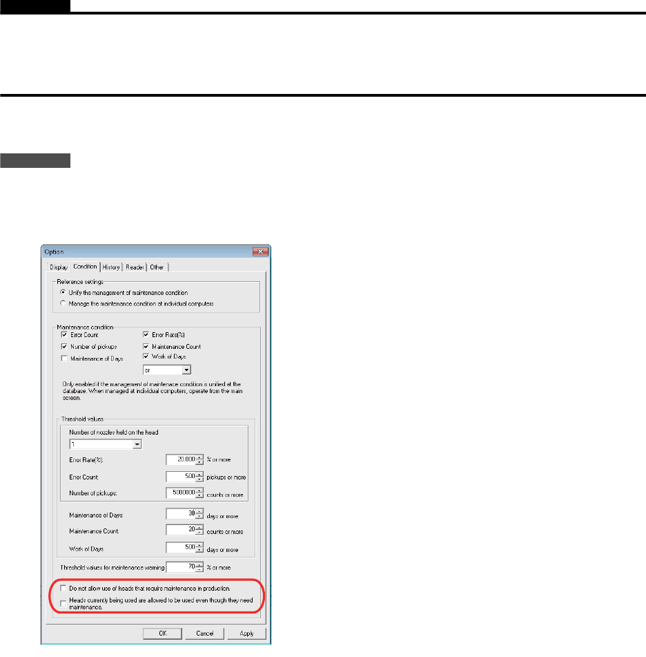 • 在 [ 参考设定 ] 设置为 [ 用计算机分别管理保养条件 ] 并使用多个 Advanced Head Maintenance 时,必须将本设定改成相同设定。