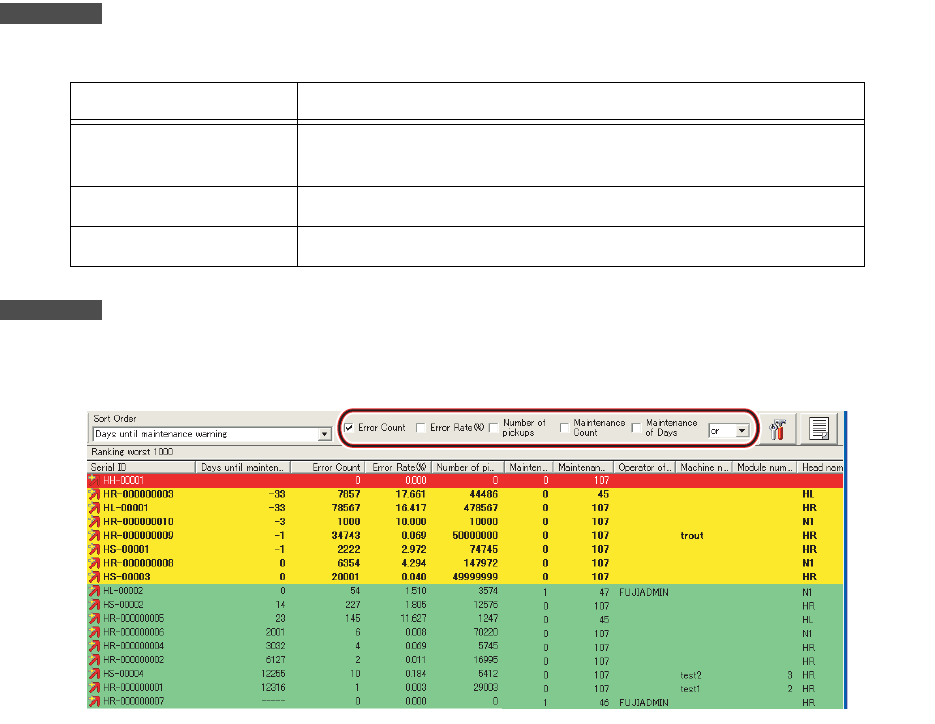 生成维修保养警告所需天数将显示于 [Worst ranked] 视图中。