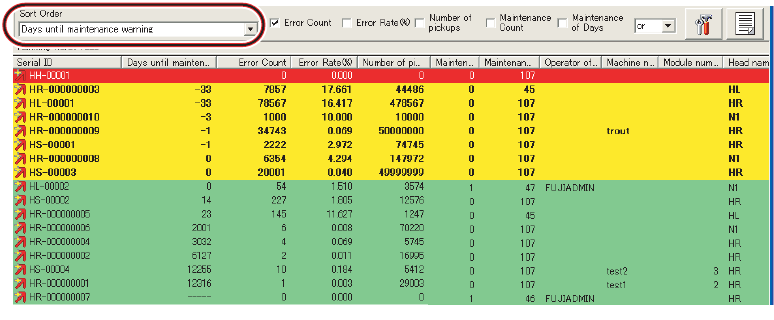 在 [Sort Order] 中选择 [Number of days before a maintenance warning],将按照最接近该天数最优先