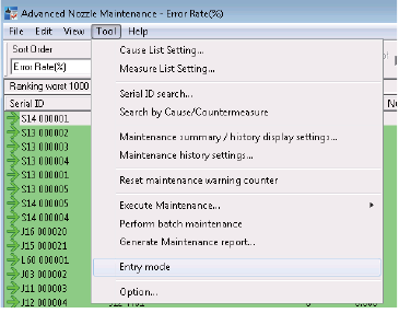 OPE-NEXIM-007S0 14. Advanced Head Maintenance Nexim 操作手册 517 运用方法的设定 请从 [Tool( 工具 ) ] 选 择 [Entry mode( 接受模式 )]。在 [Entry mode( 接受模式 )] 旁边放入勾选。 根据 [Entry mode ( 接受模式 )] 旁边有无勾选,运用方法 变化。关于运用的详细内容请参 照上述。 Entry mode ( 接受模式 ) 旁…