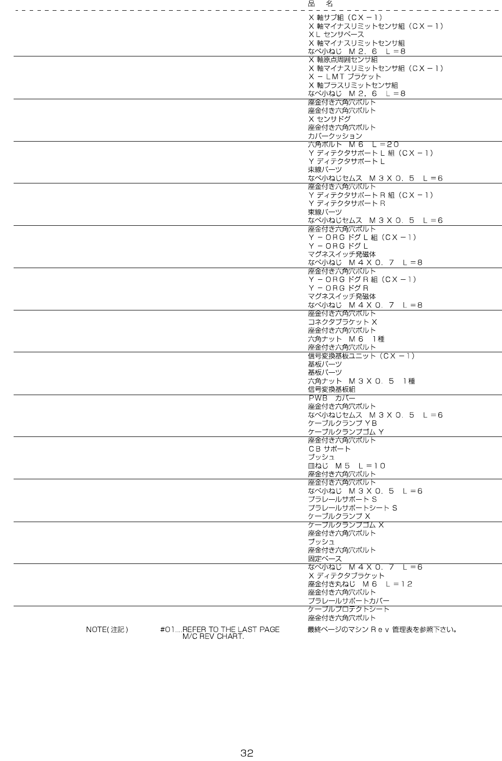 REF.NO NOTE PART NO D E S C R I P T I O N Qty