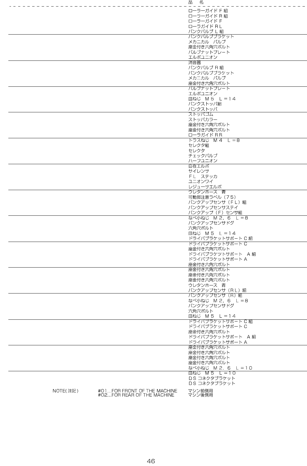 REF.NO NOTE PART NO D E S C R I P T I O N Qty