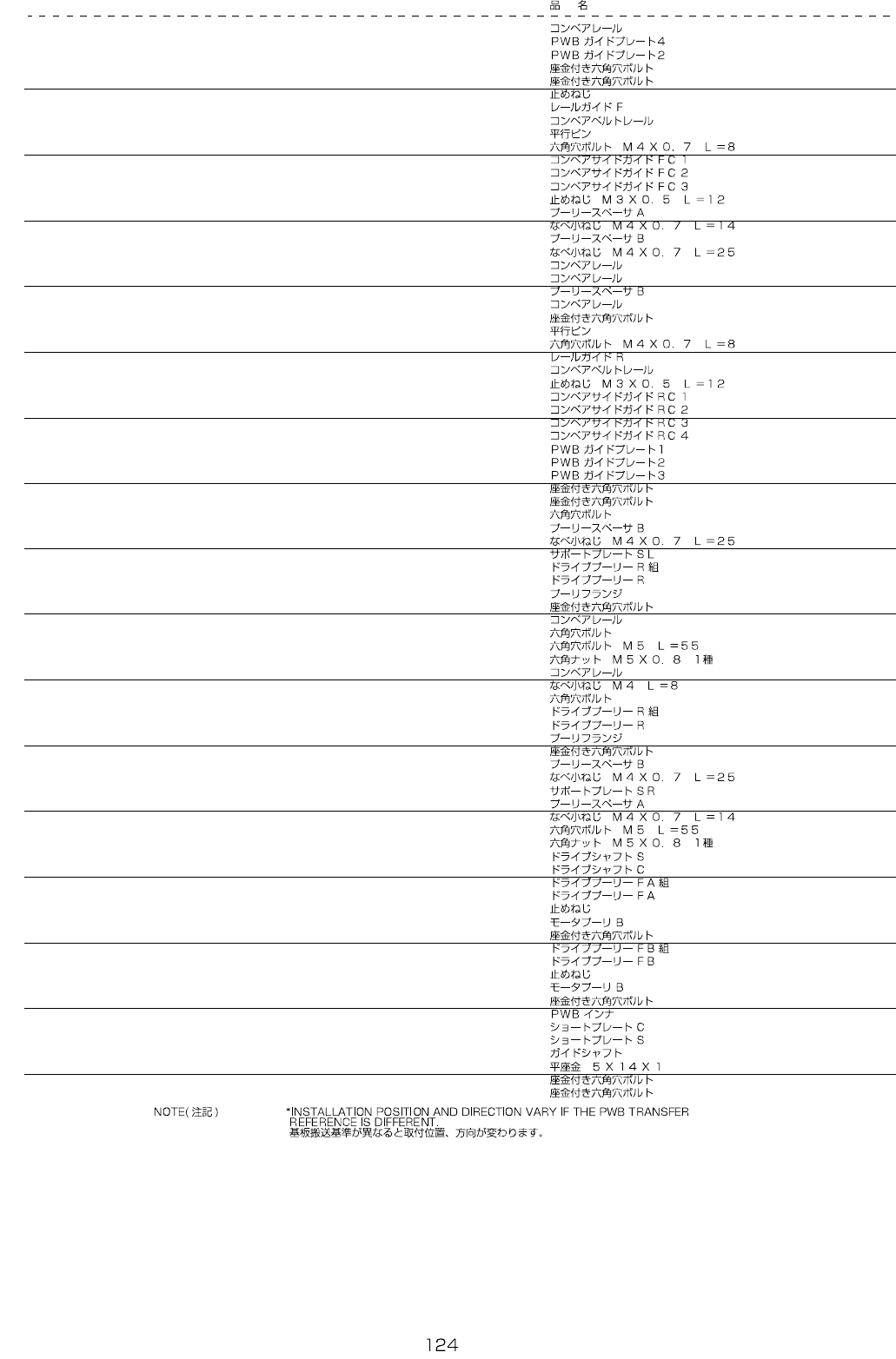 REF.NO NOTE PART NO D E S C R I P T I O N Qty