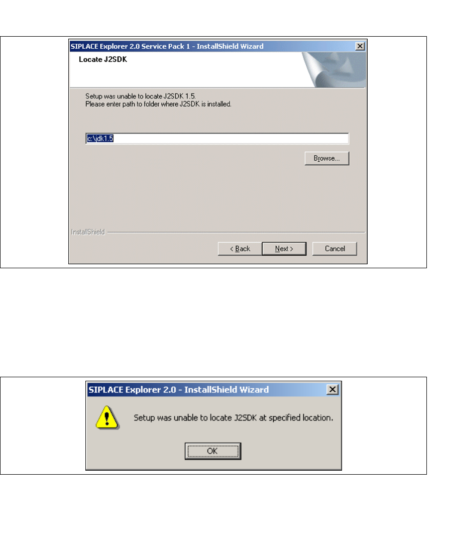 Fig. 3 - 18 SIPLACE Explorer setup - unable to locate J2SE