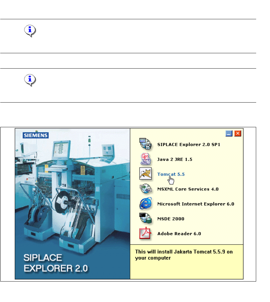 3.1 Initial Installation of SIPLACE Explorer 2.0 SP1 Edition 12/2005 EN
