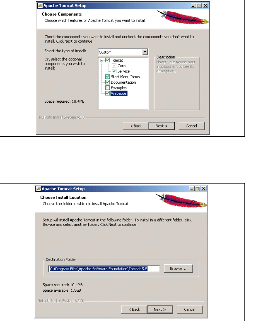 Fig. 3 - 29 Apache Tomcat setup - selecting features