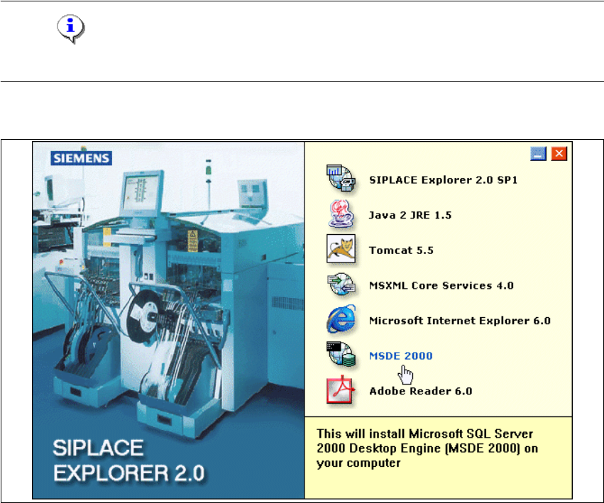3.1 Initial Installation of SIPLACE Explorer 2.0 SP1 Edition 12/2005 EN