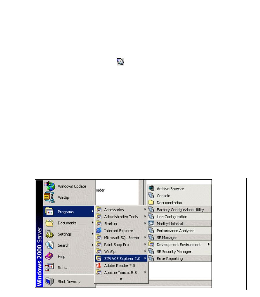→ SIPLACE Explorer can be started by selecting Programs → SIPLACE Explorer 2.0 from the