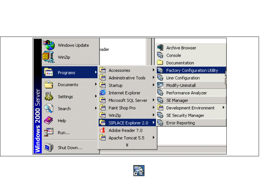 → SIPLACE Explorer can be started by selecting Programs → SIPLACE Explorer 2.0 from the