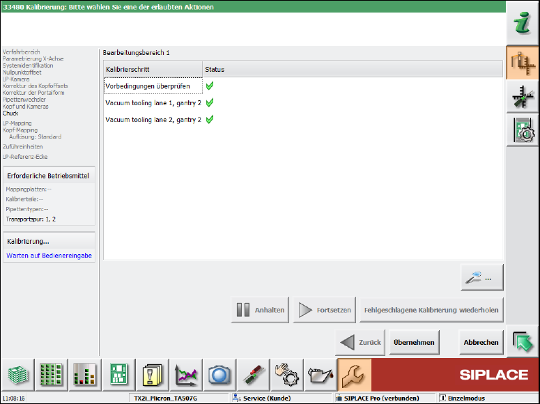 Abbildung 6-17: Kalibrierung Vakuum-Tooling abgeschlossen