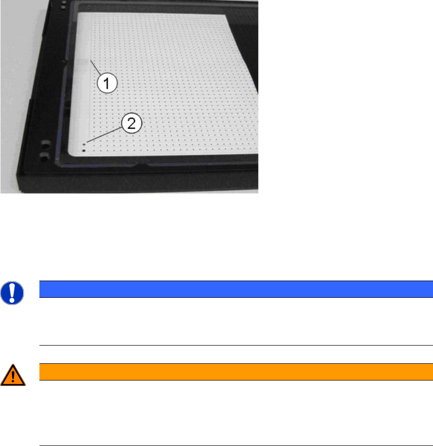 ► Make sure that the global fiducials (2) are kept free of the foil.
