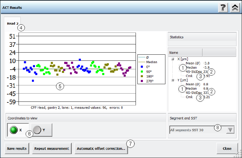 which the offset values to be corrected (median values) can be selected. See section 4.2.5.2.