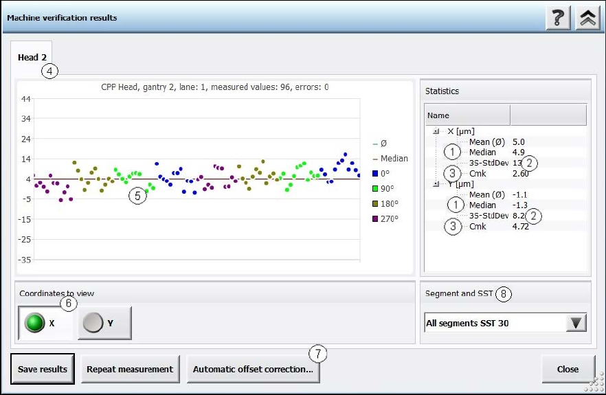 (4) Here you can switch between the heads (gantries).