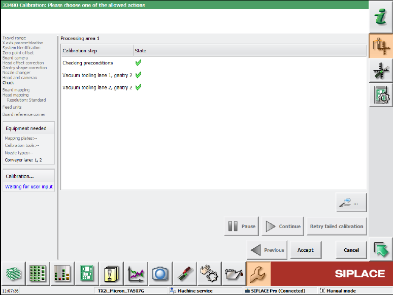 ACT with SSW 7xx / User Manual 07/2017 Edition 102 ► If the calibrati on was successful, cli ck the Accept butt on. Figure 6-17: Vacuum tooling c alibration completed T his completes the in stallation, configuration and …