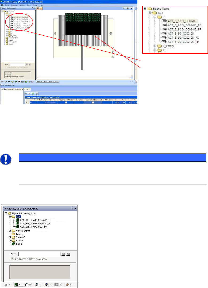 ACT mit SSW 7xx / Bedienungsanleit ung Ausgabe 07/2017 29 Abbildung 3- 26 zei gt die Tische unter d em ACT - Ordner: Zu erkennen ist auße rdem ein Flächen magazin mit 16x4 Bauelement reihen (Beispiel CC02 - 05 Glasbauele…