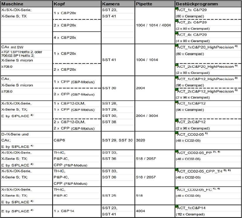 ACT mit SSW 7xx / Bedienungsanleit ung Ausgabe 07/2017 31 4.1.1.2 Bestückprogramm- Übersicht bei Verwendung von SIPLACE Pro ≥ 11.x ≤ 13.1 Stationssoftware - Version 706.02.SP1 Hot fix 2 bzw. 707.1.S P1 Hotfix 2 oder höh …