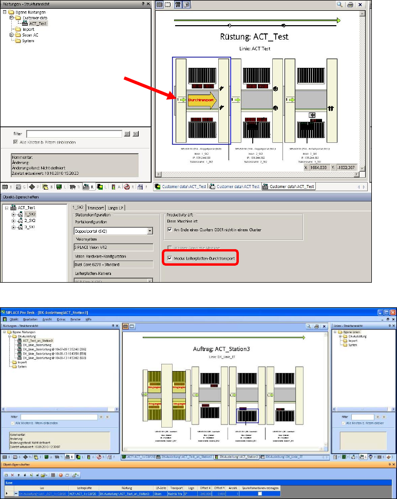 Wenn Sie mehrere Maschinen in der Linie haben, muss die ACT-Platte entweder vor oder nach der