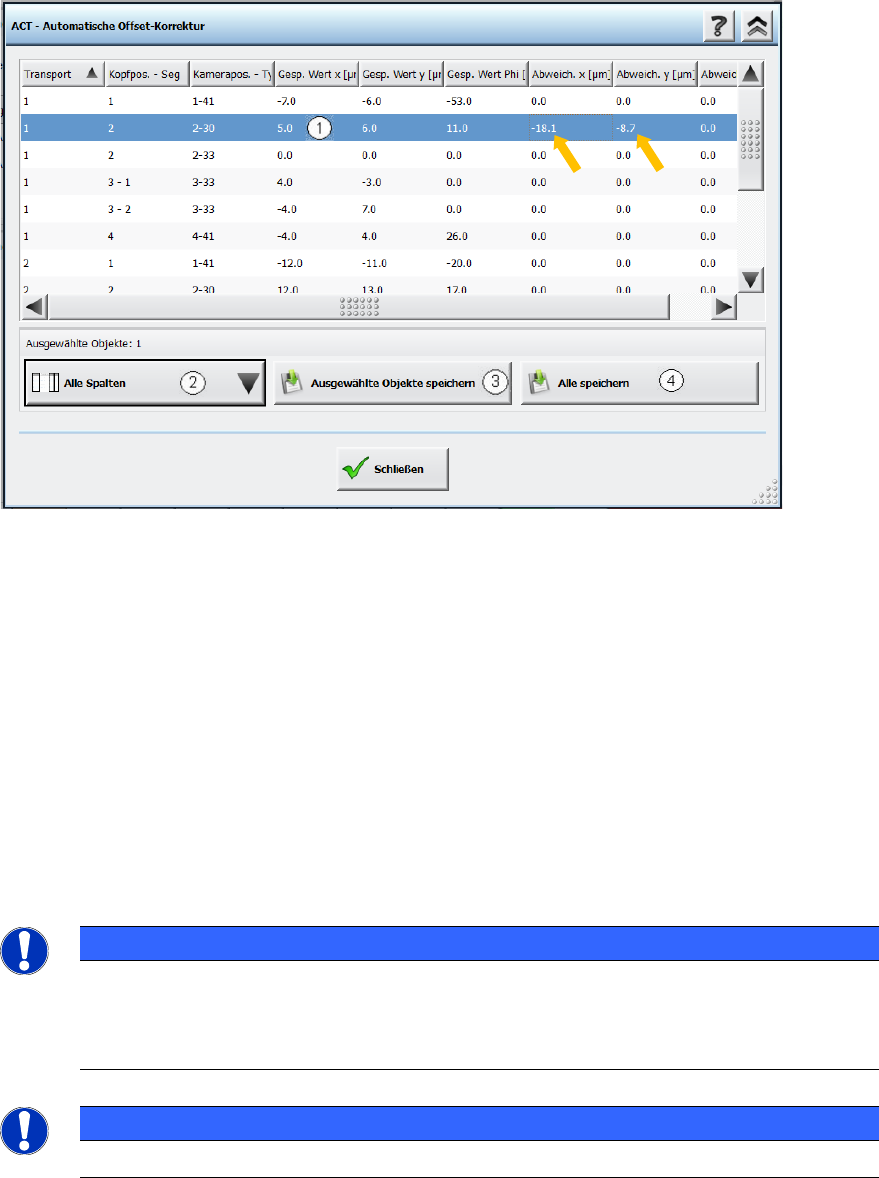(3) Übernahme aller markierten Offset-Werte in die Maschinendaten.