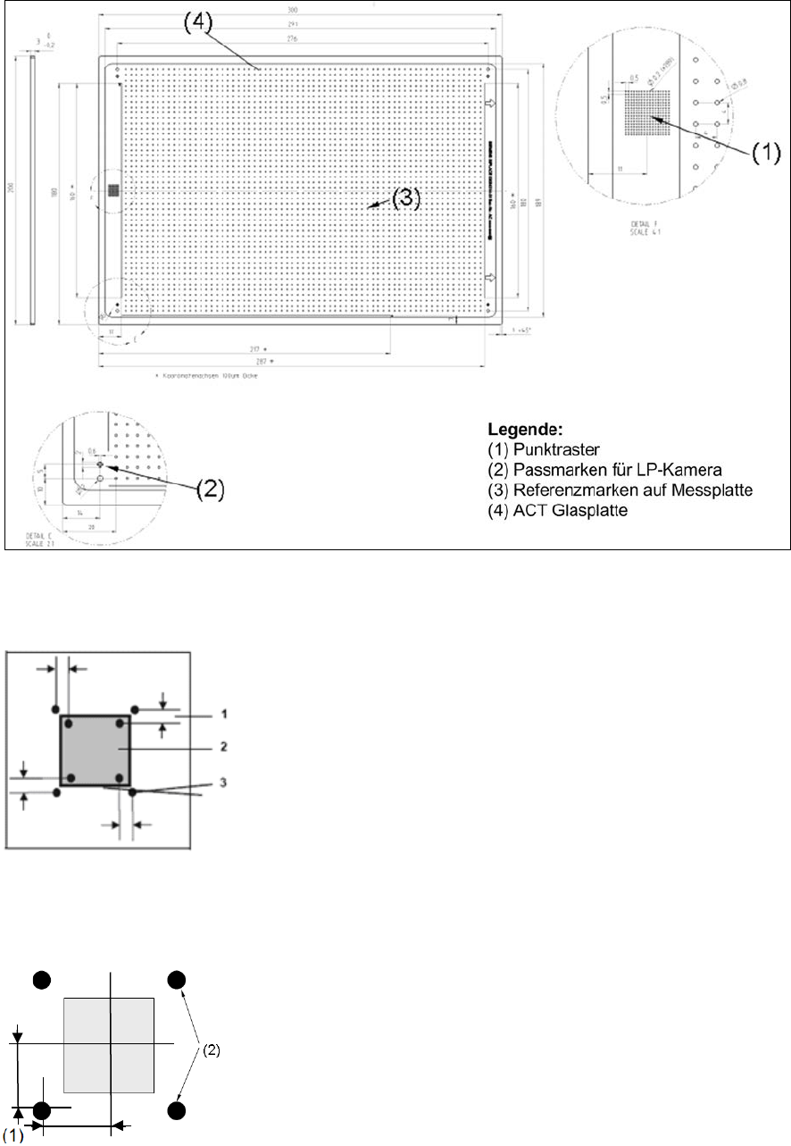 (1) Sichtfenster der LP-Kamera (4) Messplatte aus Glas (300 x 200 mm)