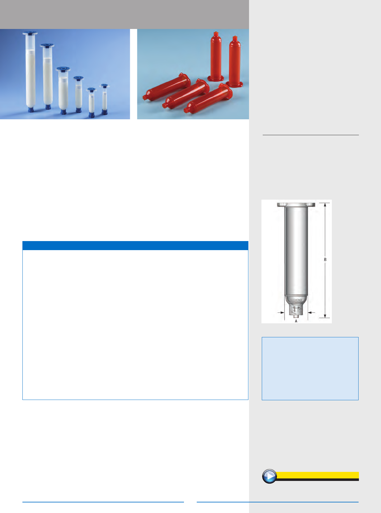 • Precision t between syringe and piston ensures consistent uid deposits
