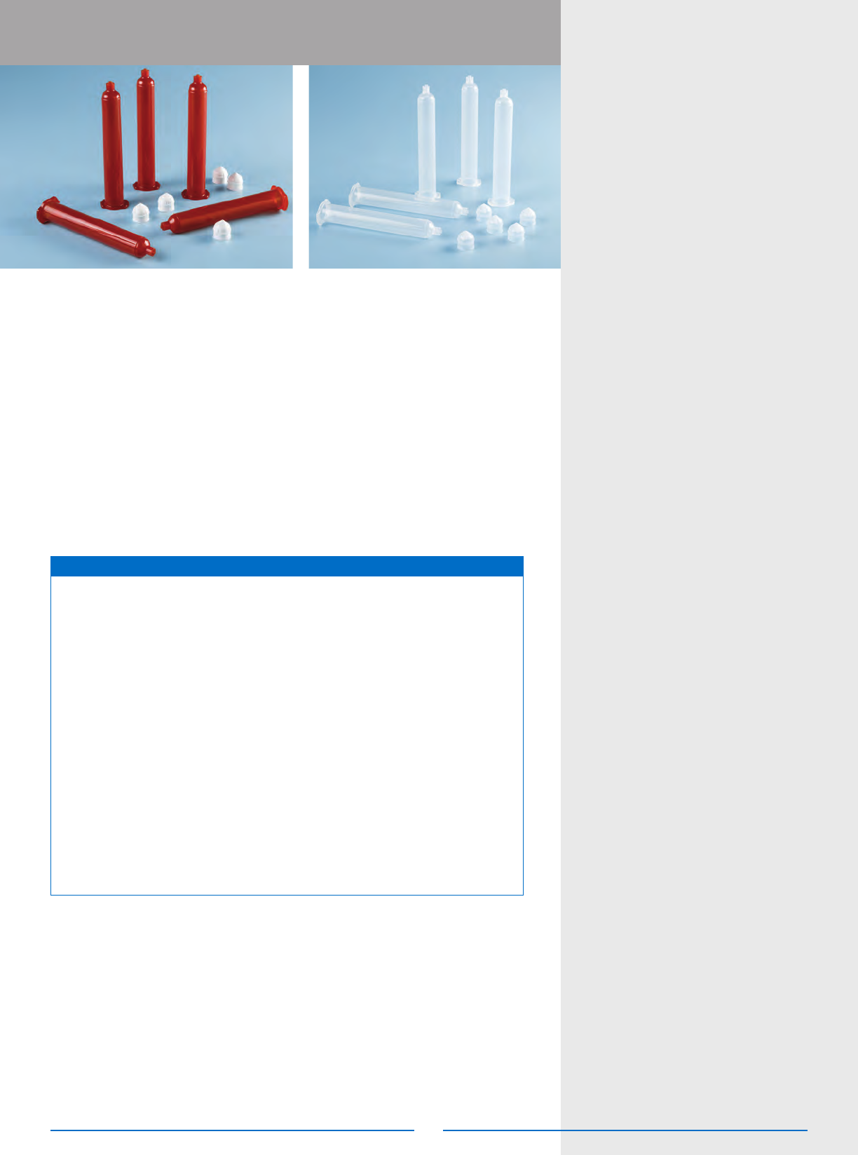 Syringe barrels are available in clear for most uids; transparent amber for UV- and light-sensitive materials