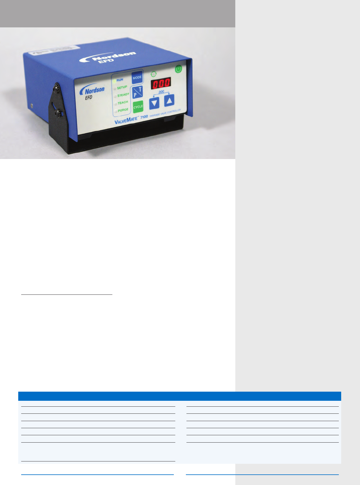 70 www.nordsonefd.com info@nordsonefd.com USA & Canada 800-556-3484 Europe 00800 7001 7001 Asia +86 (21) 3866 9006 ValveMate Controllers ValveMate 7100 Single Valve Controller Features and Benets • Maximum process c…