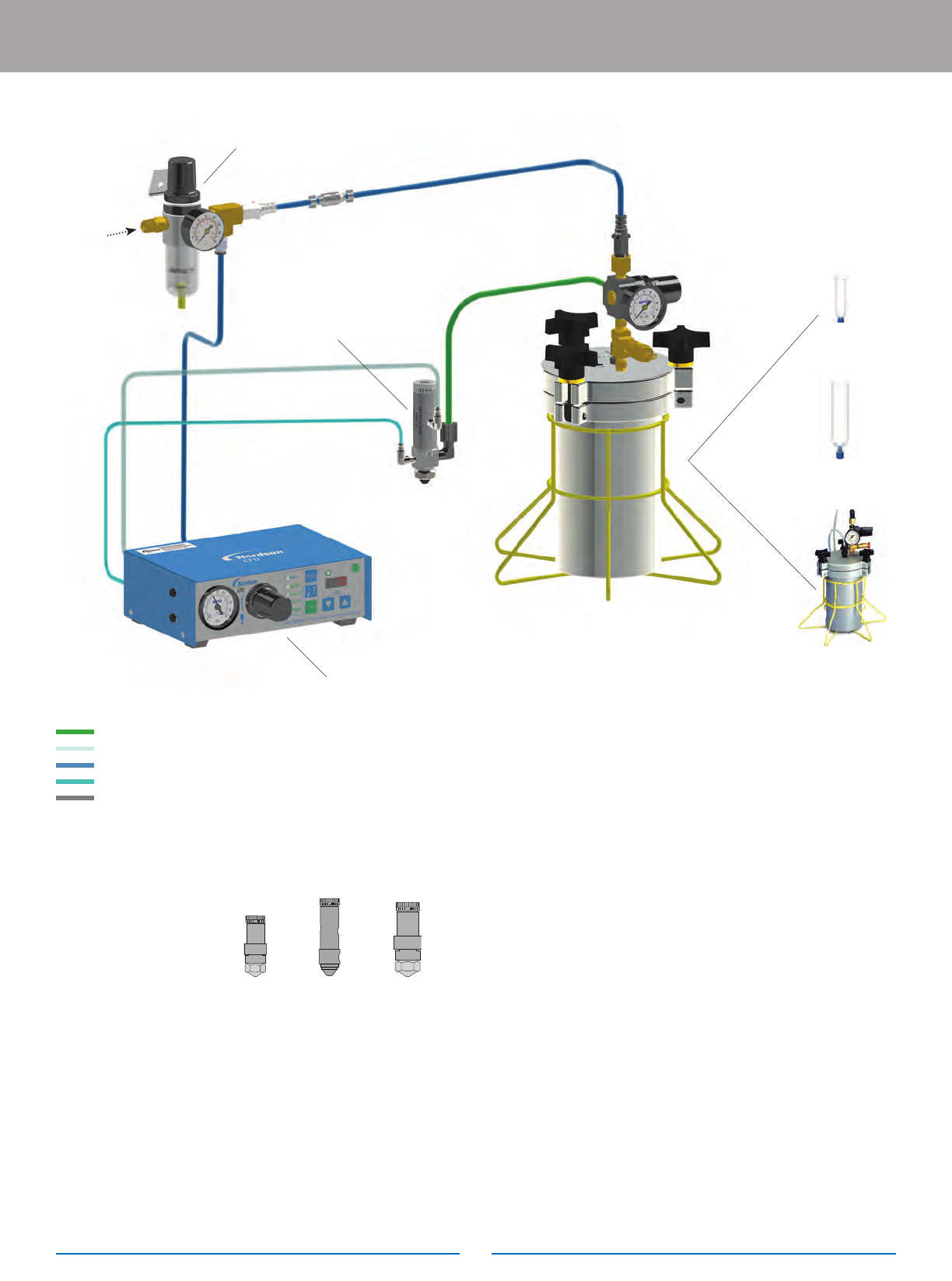 Unique microprocessor circuitry provides precise control of nozzle air, valve open time,