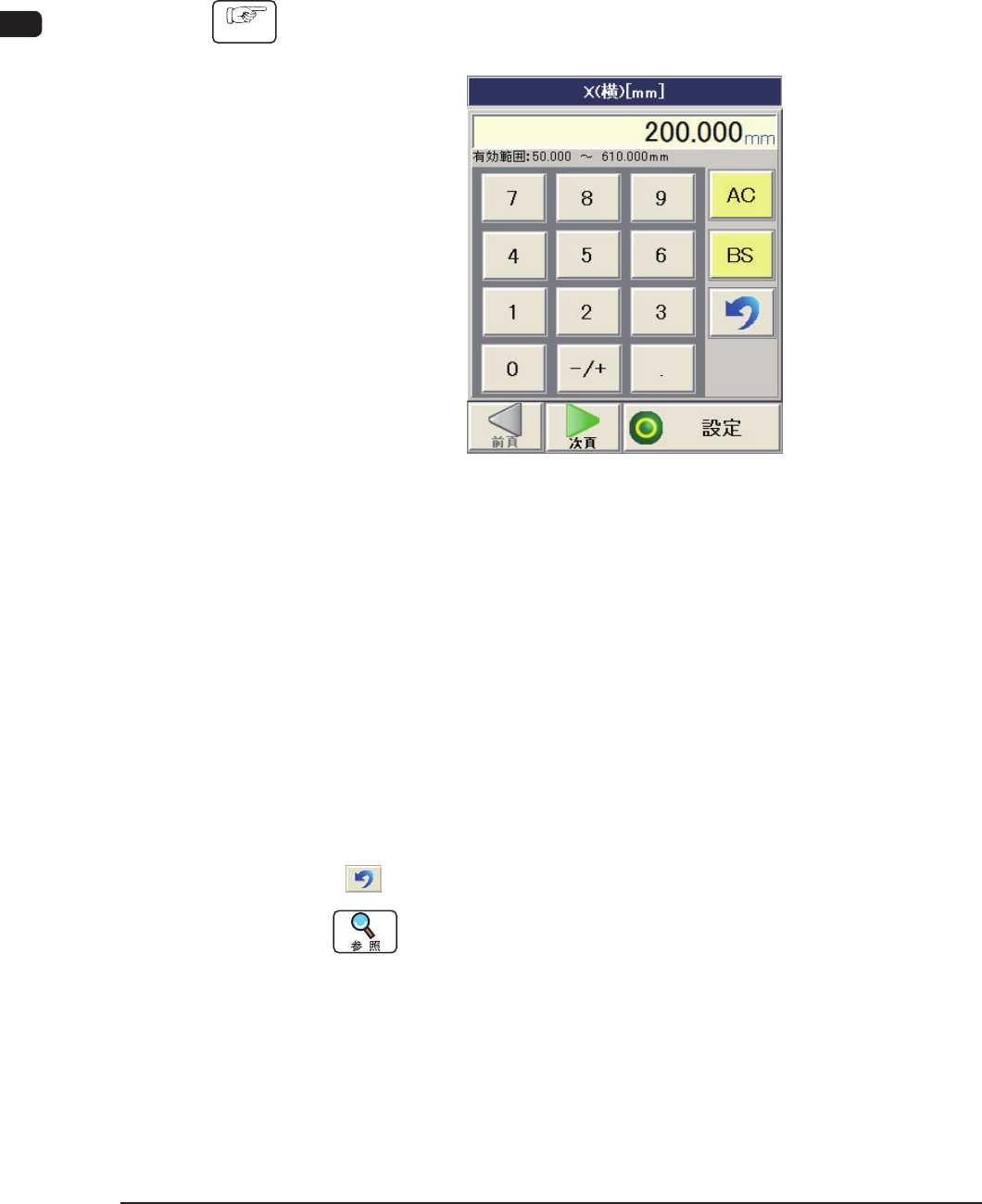 (1) 操作画面で、数値データの入力が必要なボタンを押す。