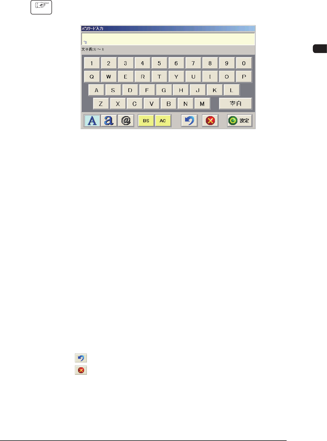 文字データの入力画面の例 (“パスワード入力”画面 ) F1B11