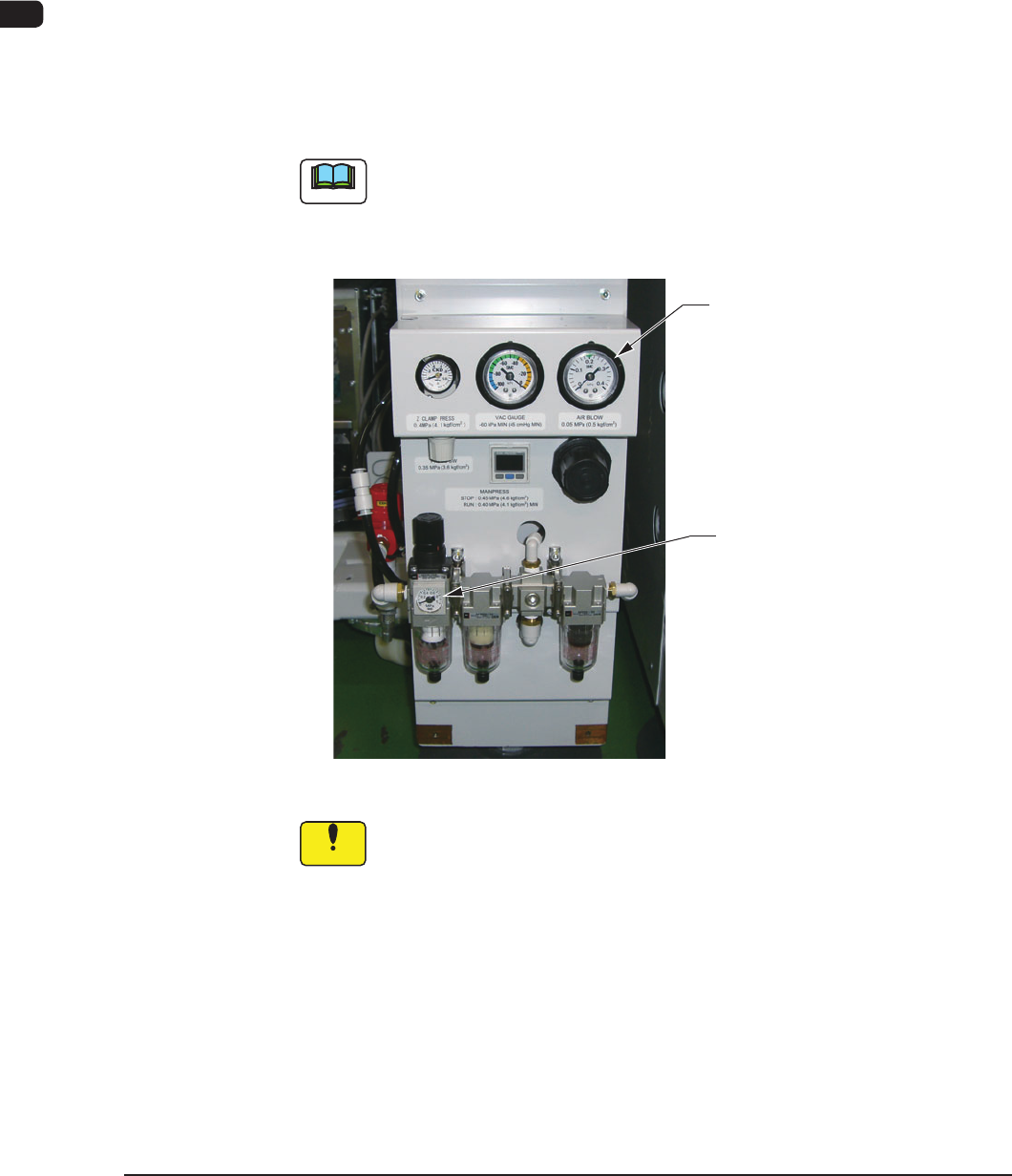 1OM-1601 3-2 3 章 1. 生産運転 1.1 生産運転前の点検 1.1.1 使用電源の確認 本装置に電源を供給している工場のメインブレーカがオンになっている ことを確認してください。 • 使用電源 : 3 相 AC 200 V ± 20 V • 皮相電力 : 約 7.4 kVA 1.1.2 使用空気圧の確認 以下の空気圧に設定されていることを確認してください。 • メイン圧力 :0.45 MPa (4.6 kgf/cm 2 …