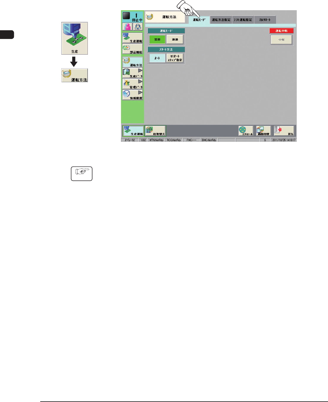 (1) “運転方法”画面で、[ 運転モード ] タブを押す。
