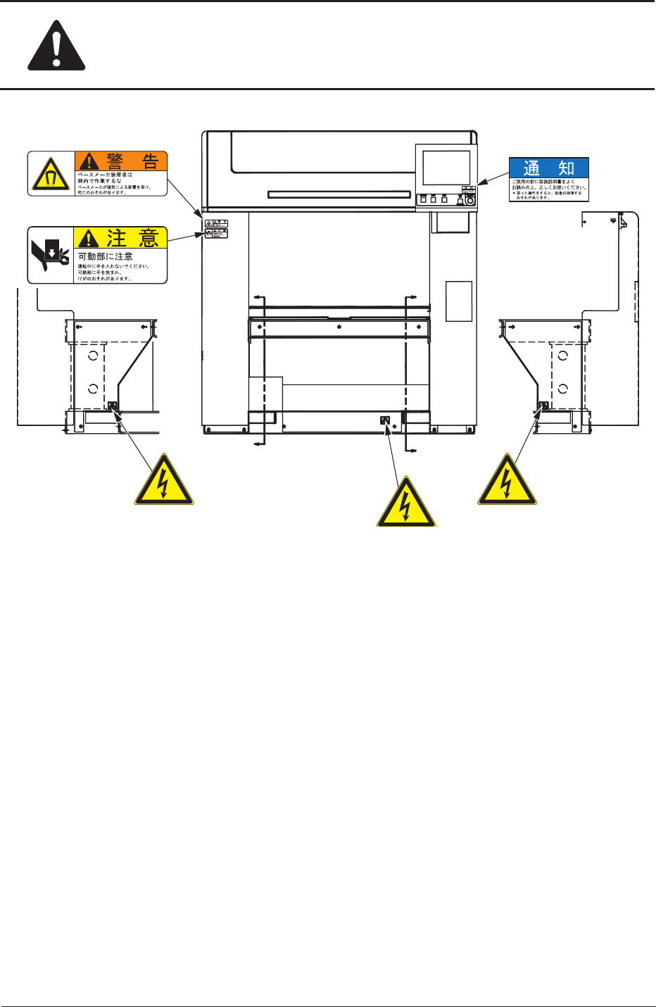 警告ラベルは、危険か所または注意か所に貼付けてあります。