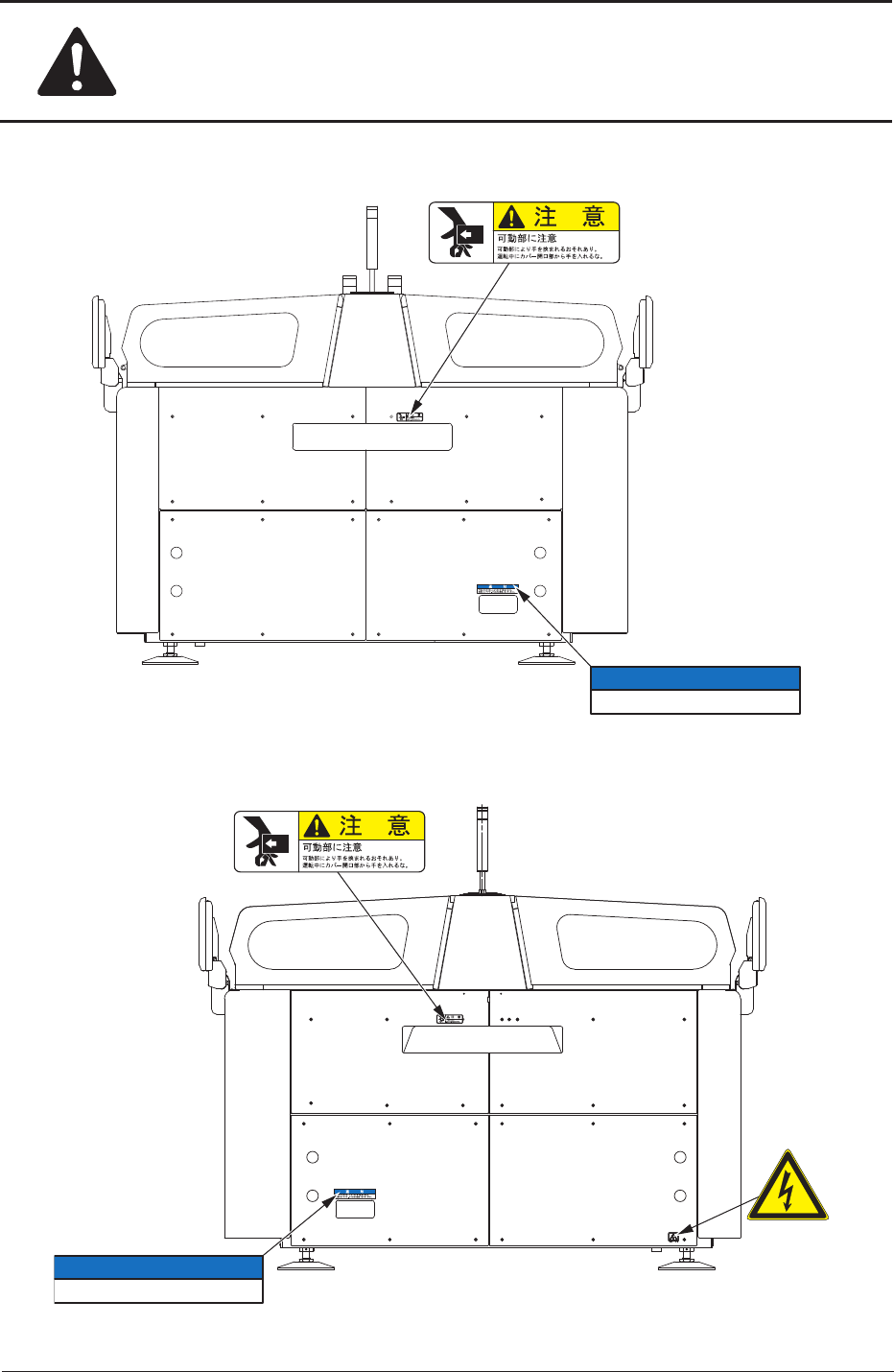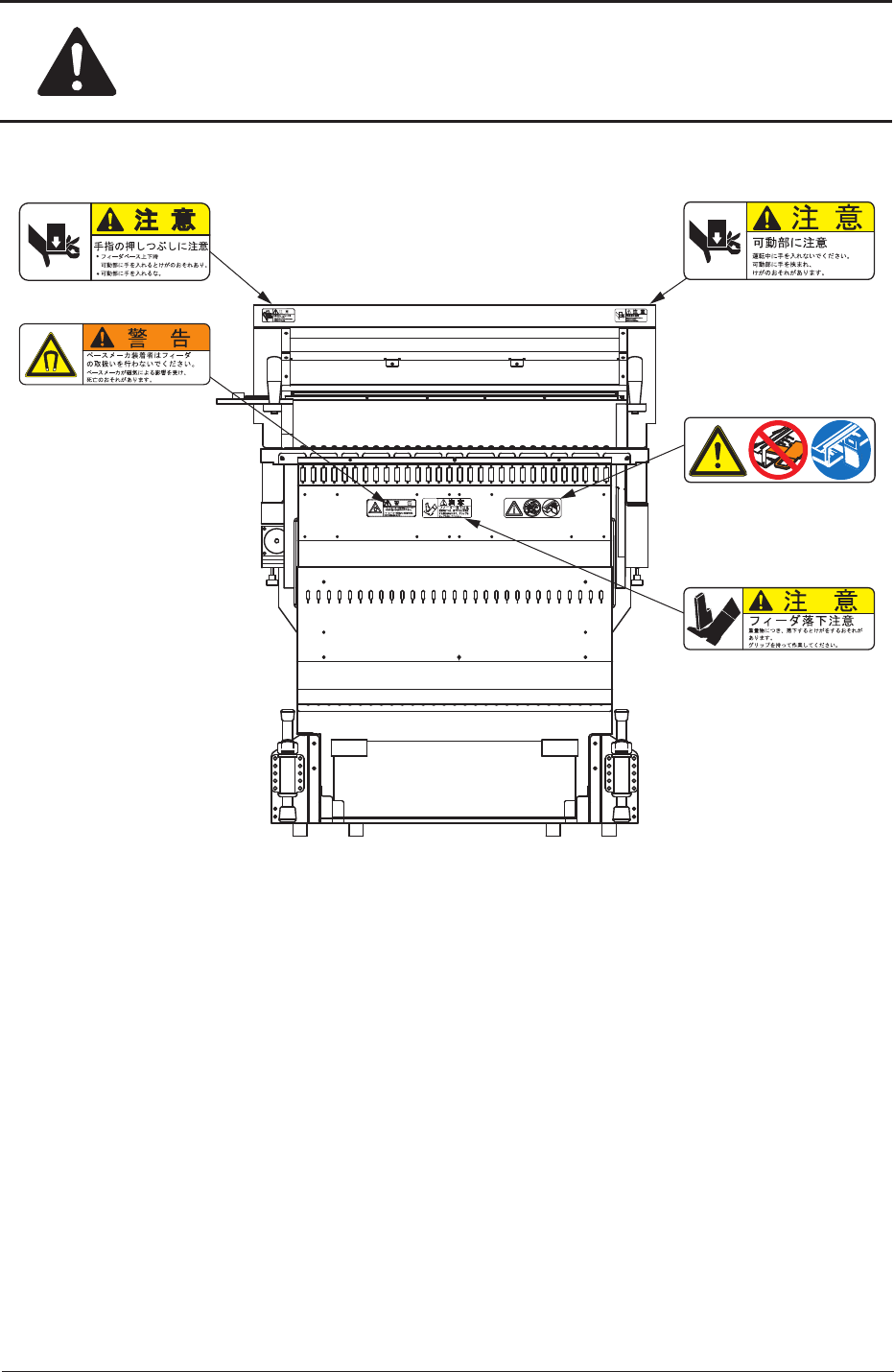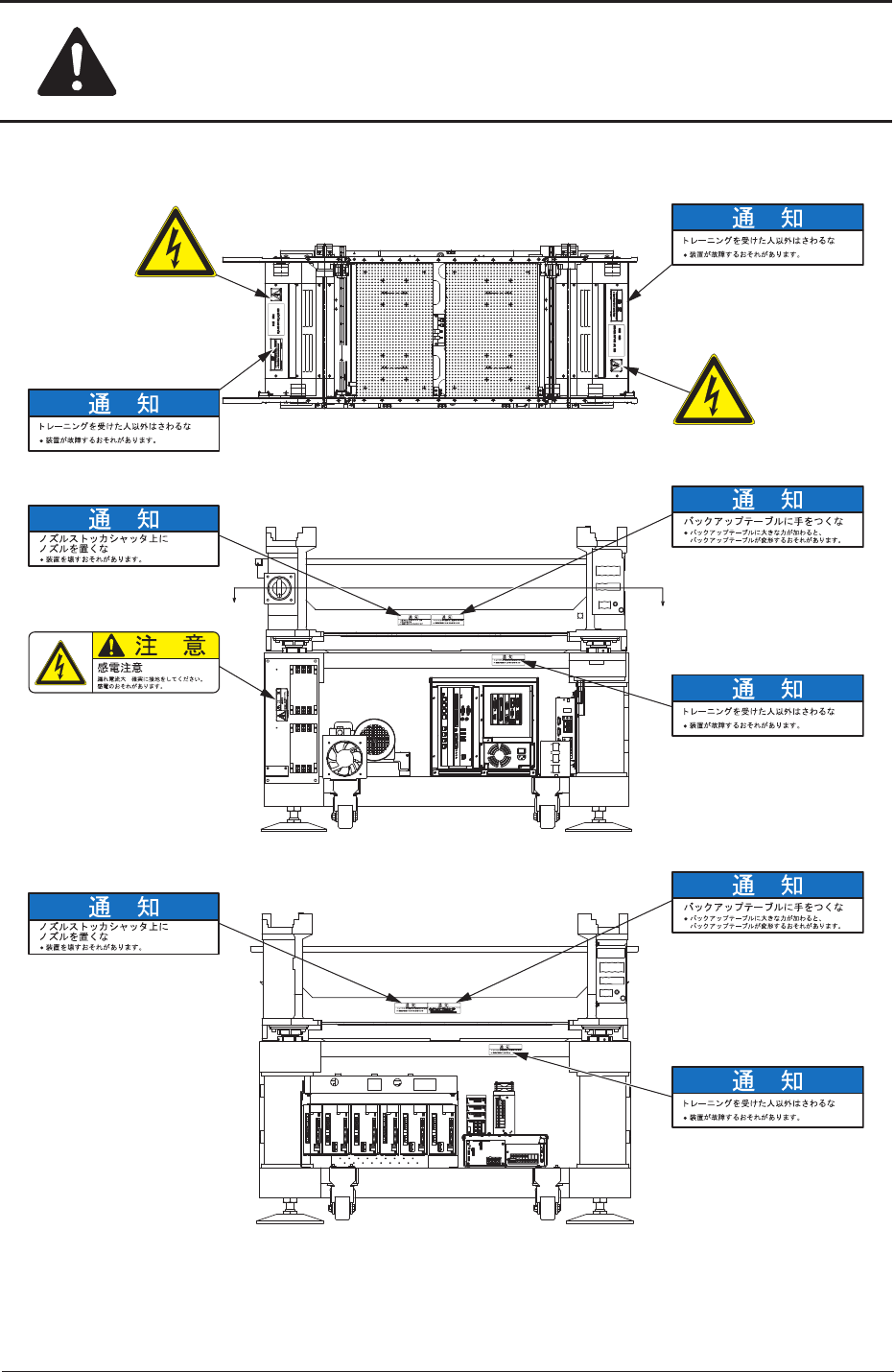 安全 -19 1OM-1601 1010-004 5.本装置の警告ラベル 矢視図 B 装置正面 装置後面 B B (18) (8) (19) (6) (18) (18) (18) (20) (20) (5) (19) F1X6 安全にお取扱いいただくために