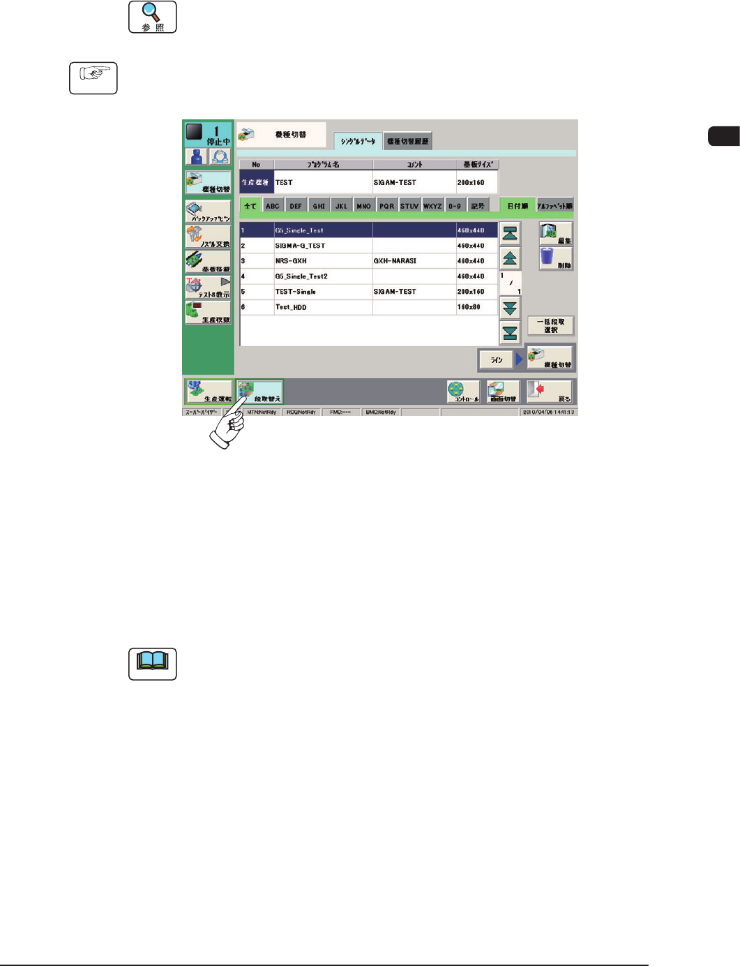 (1) 共通メニューバーの [ 段取替え ] ボタンを押す。