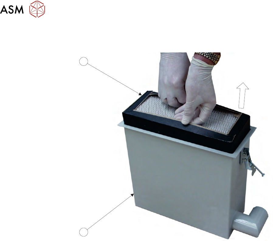 3 VAKUUM-FILTRATIONSEINHEITEN 3.1 ERSETZEN DES FILTERS WARTUNGSHANDBUCH MICRON 11/2017 81 5. Die Rückseite der Kohlenstoff-Filtereinheit ist unter einem Filtersicherungsbügel angebracht. Um den Filter zu entfernen, heben…