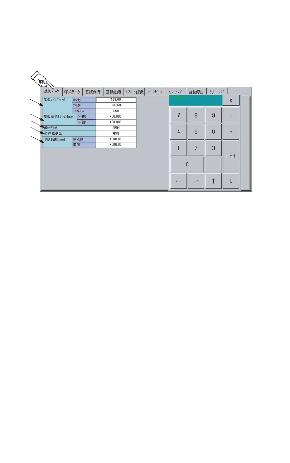 テンキー ” 画面を表示させて、X(横)、Y(縦)、T(厚み)