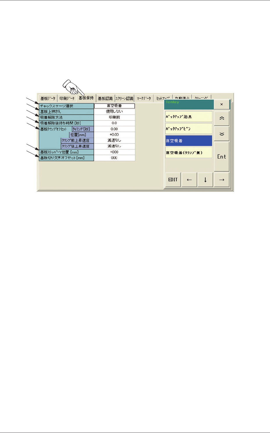 基板保持 ] タブを押すと、以下のタブシートが表示