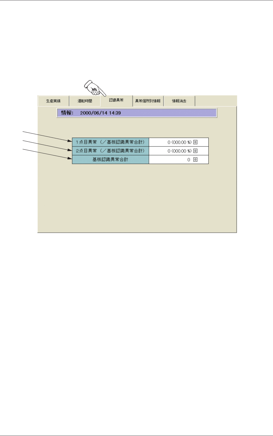 1” サブメニュー画面の [ 認識異常 ] タブを押すと、