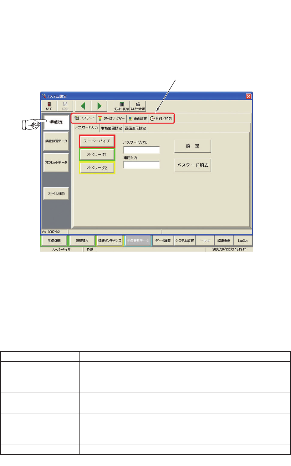タ 1”、“ オペレータ 2”)の担当者に対して、パスワードと有
