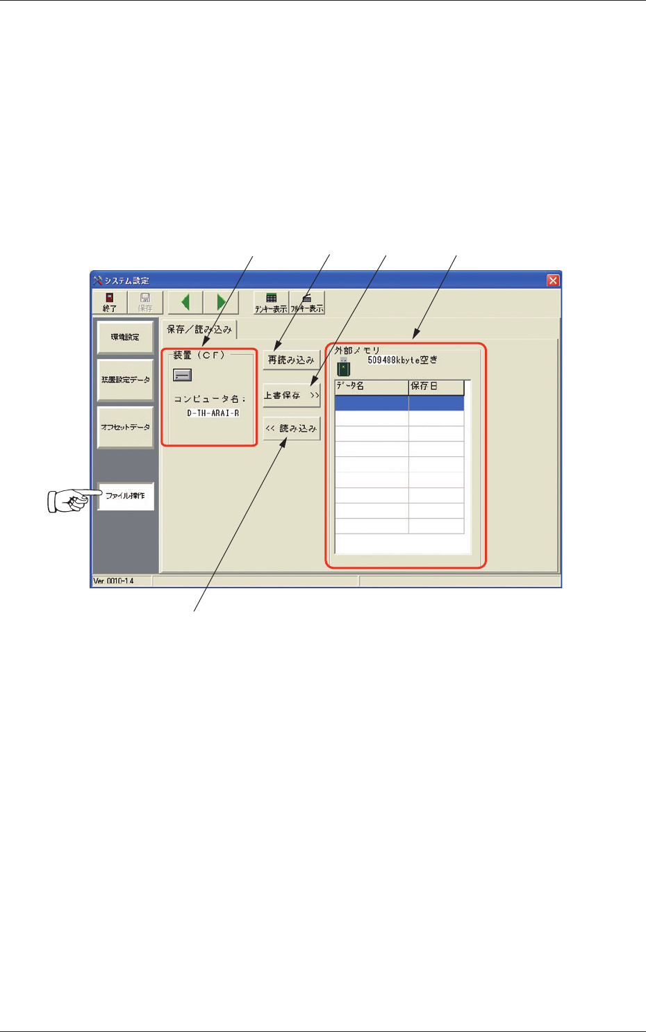 システム設定サブメニューバーの[ファイル操作]ボタンを押すと、