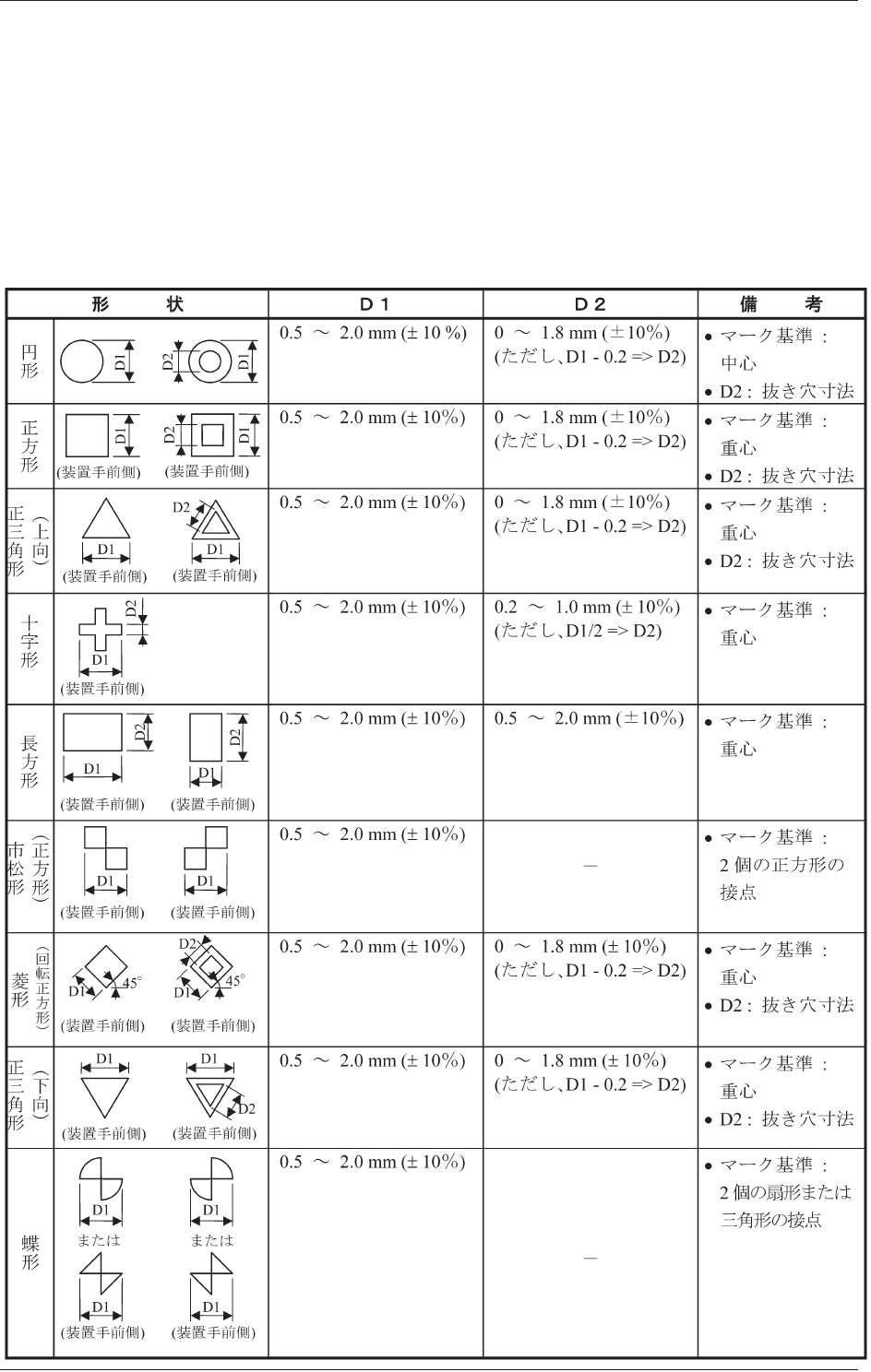 詳細は “ (8) 認識マークについて ” の “ 形状と寸法 ” を参照