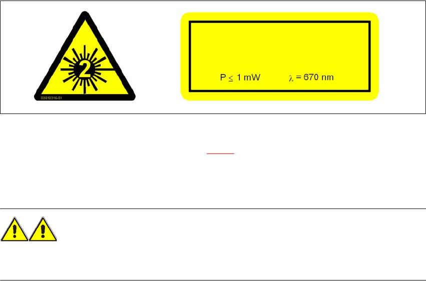 Trots den låga lasereffekten, ska man ovillkorligen undvika att se rakt in i laserstrålen. Genom att
