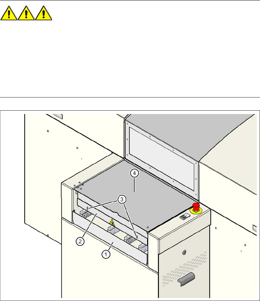 2 Driftsäkerhet Skötselinstruktion SIPLACE D1/D2 2.5 Säkerhetsföreskrifter för automatens drift Från programversion SR.605.xx Utgåva 07/2008 SE 62 2.5.6 Säkerhet sanvisning för ingreppsskyddet vid inmatningsbandet KLÄM…