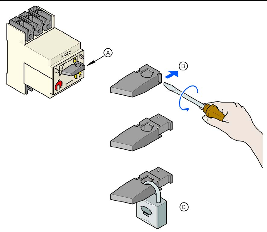 Bild 2.10 - 2 Låsning av motorskyddsbrytaren