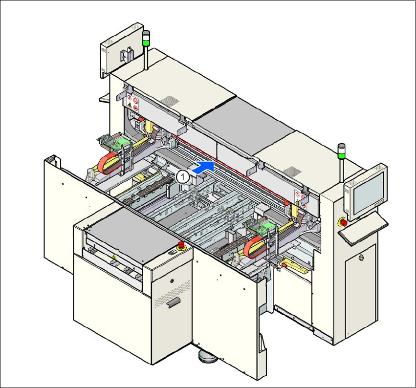 Skötselinstruktion SIPLACE D1/D2 2 Driftsäkerhet Från programversion SR.605.xx Utgåva 07/2008 SE 2.1 Säkerhetsanvisningar 39 Bild 2.1 - 1 Permanentmagneternas position för linjärdrivningarna (1) Permanentmag neter för Y …