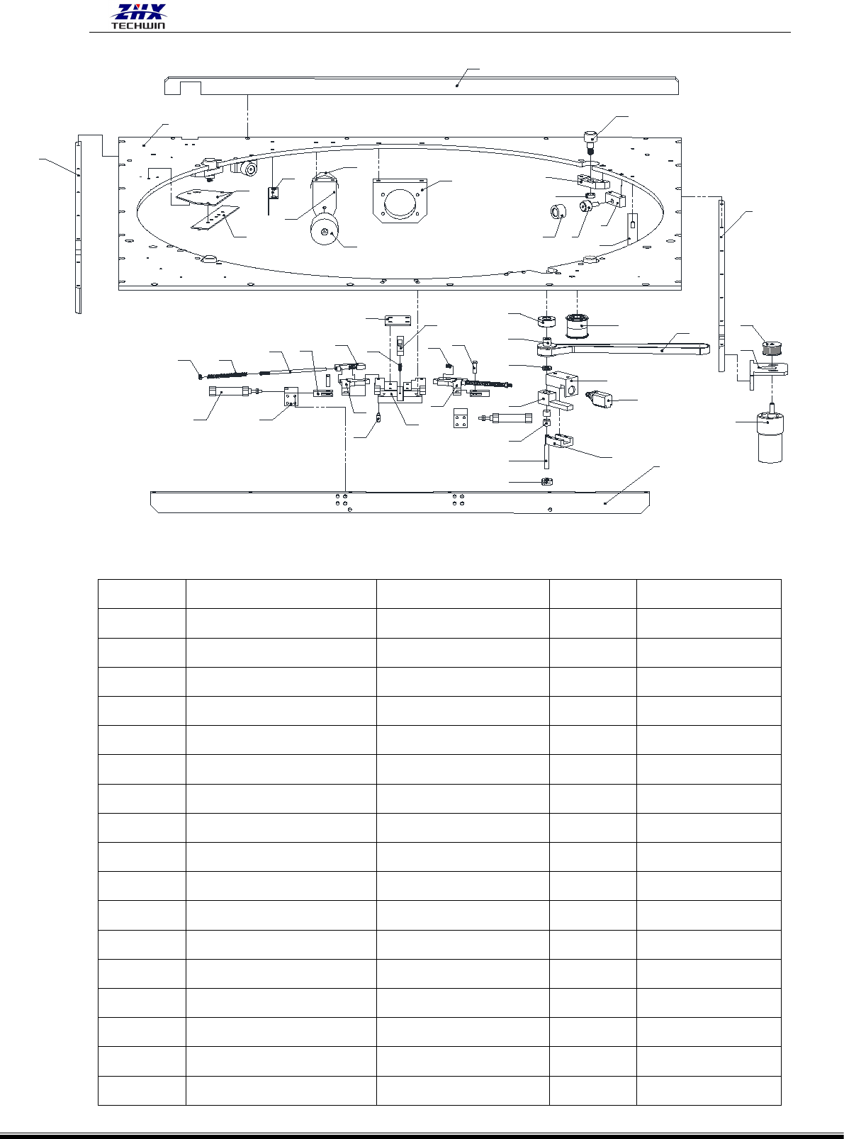 ZHX-R20C&D(-IN)立式插件机说明书 深圳市中禾旭精密机械有限公司 www.zhxai.com - 100 - 2)离线工作台 序号 中文名称 编号 用量 备注 1 测试板 1 2 抱箍 LS2DZB-18064 2 3 前面挡条 LS2DZB-18070 1 4 定位块 LS2DZB-18074 2 5 转轴固定块 A LS2DZB-18081 1 6 转轴固定块 B LS2DZB-18082 1 7 扭簧 LS2D…