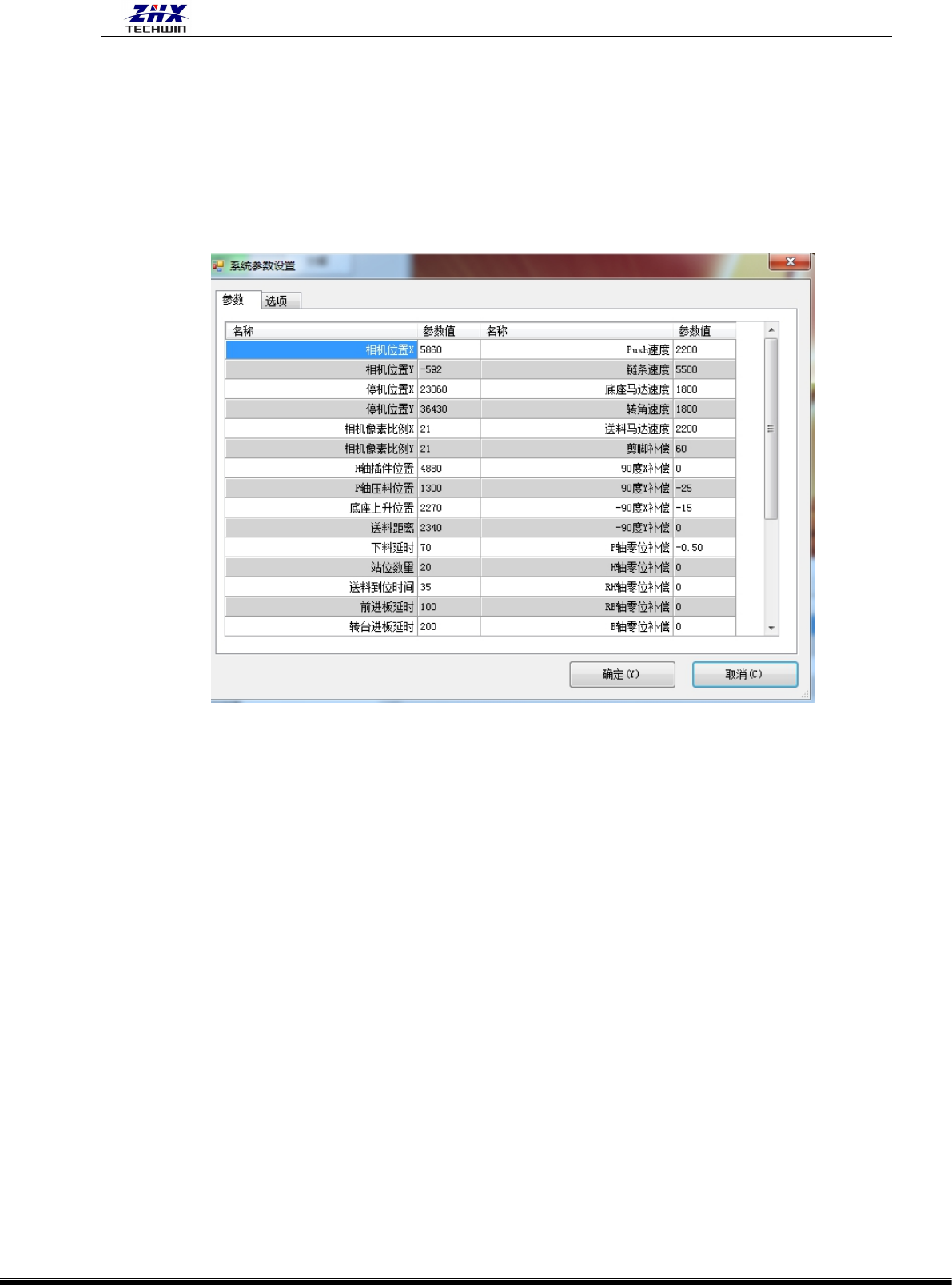 确定: 保存修改好的参数。