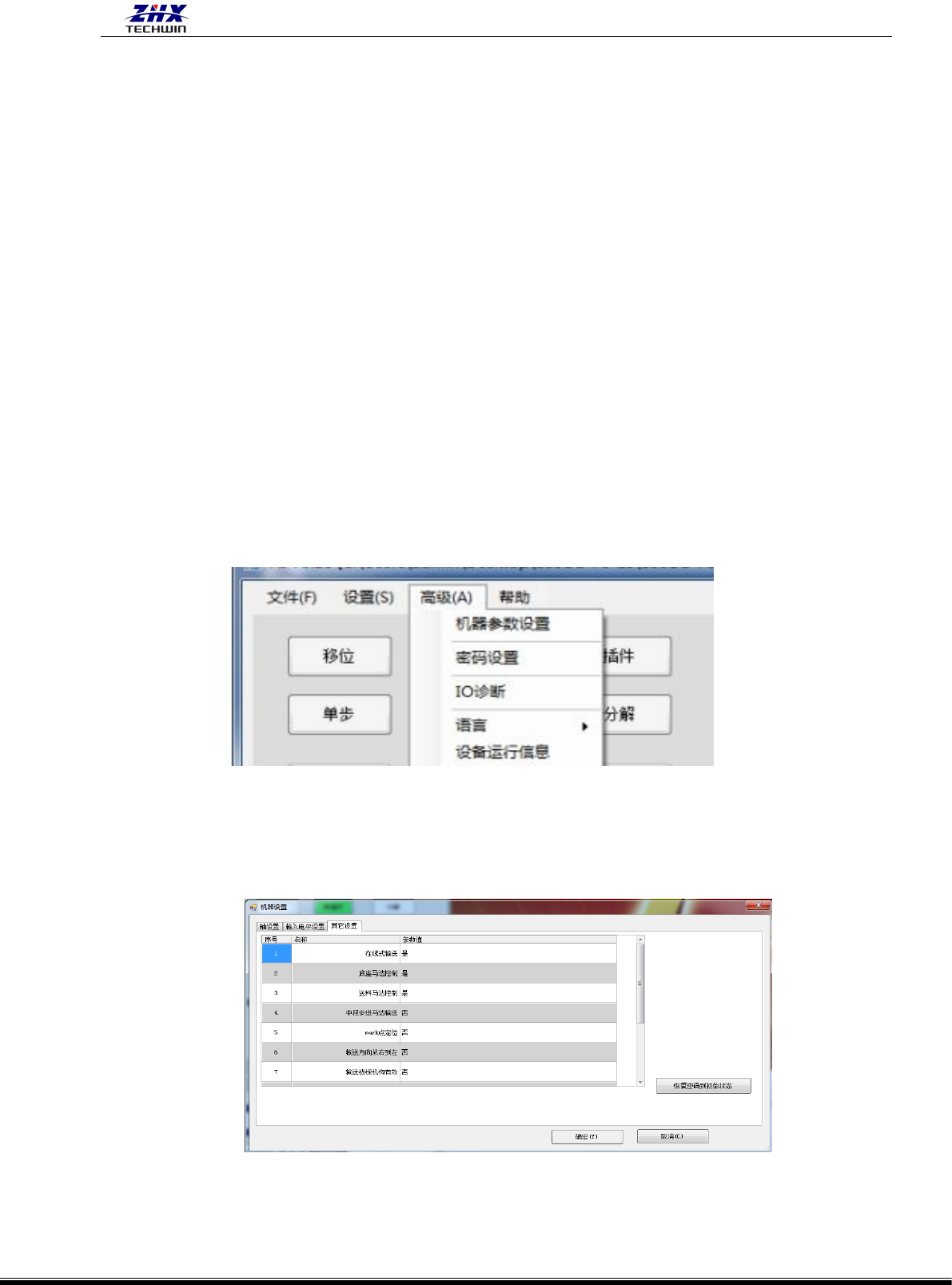 1)机器参数设置