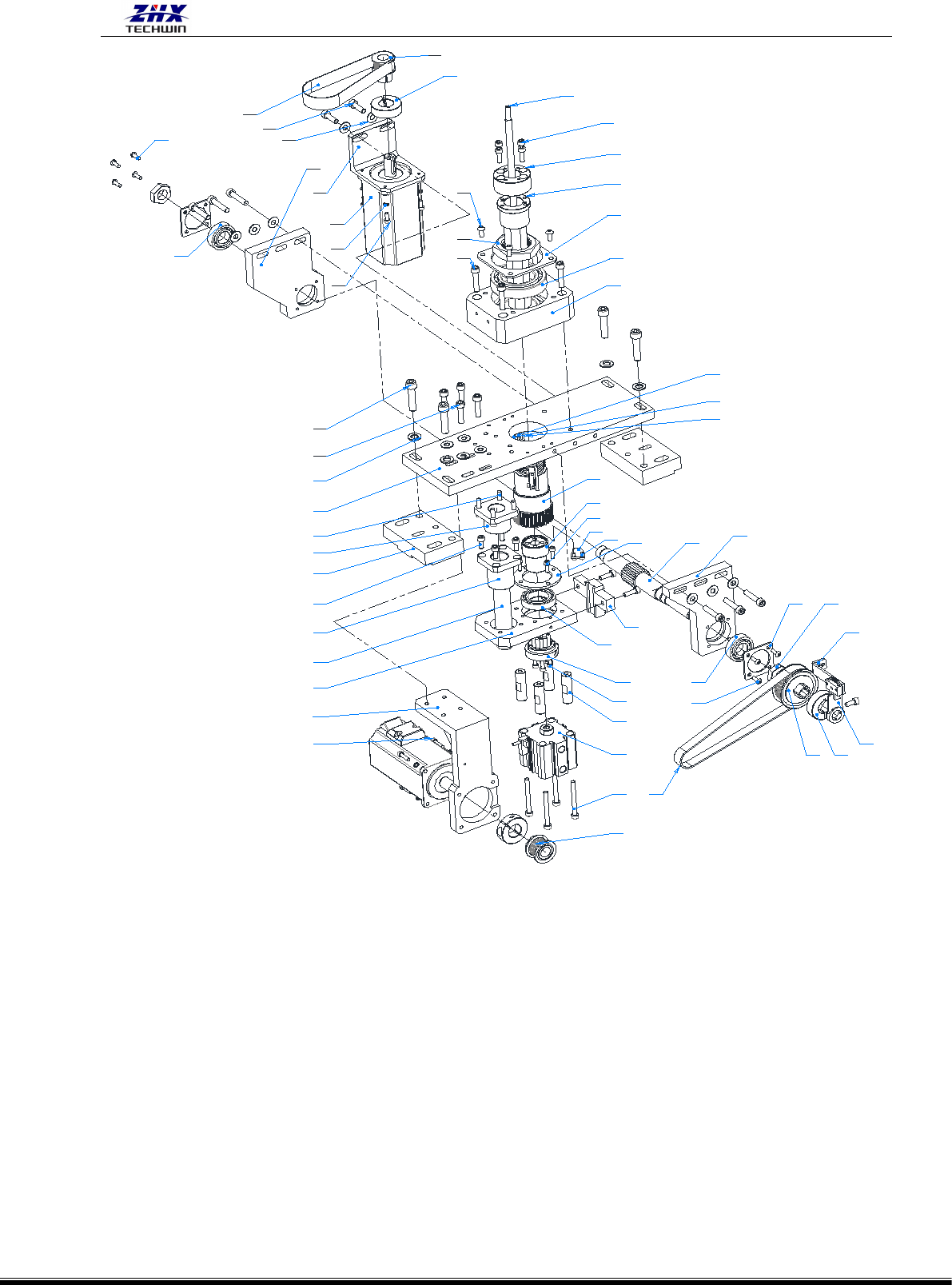 ZHX-R20C&D(-IN)立式插件机说明书 深圳市中禾旭精密机械有限公司 www.zhxai.com - 43 - 序号 名 称 编 号 用量 备注 1 顶杆 LS1D-07016 1 2 白色杯头 M5x16 WJ-10216 6 3 转接块 LS1D-07013 1 4 底座主杆 LS1D-07001 1 5 轴承盖 LS1D-07004 1 6 轴承 WJ-12135 2 7 轴承座 LS2D-07018 1 8 光电…